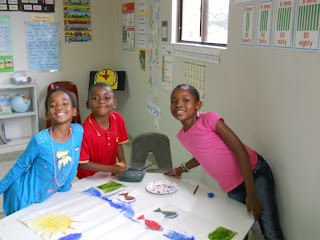 The students were busy doing a cooperative learning painting project when these photos were snapped.